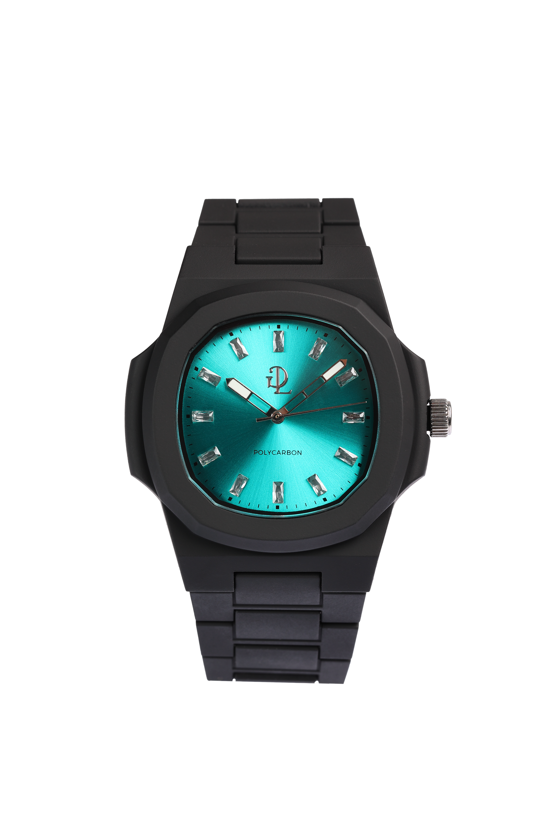 GDL Orologio Quadrante acquamarina indici cristalli bianchi taglio baguette: Cassa 40.5mm x 8.8mm, al Quarzo, Impermeabile 5 ATM, Leggero 40g, Finitura Soft Touch, Cinturino Nero, Vetro LumiNova