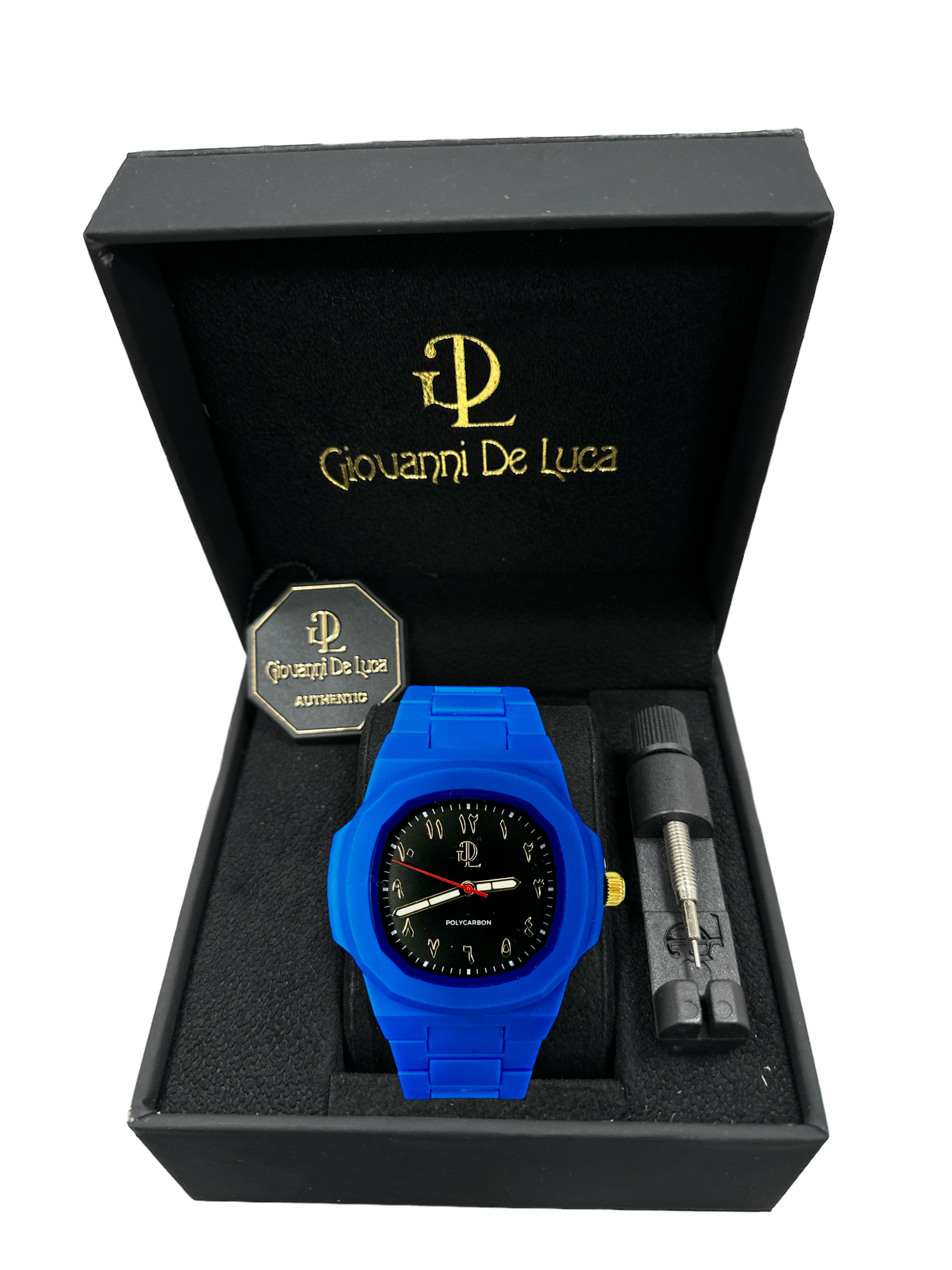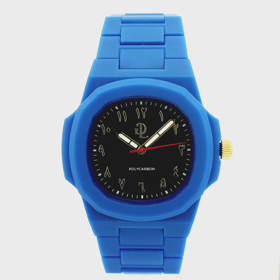 "Sfida gli orologi tradizionali con il nostro Orologio Polycarbon Blu e il suo quadrante Nero. Realizzato con un materiale resistente e leggero, offre un look audace e moderno. Aggiungi uno stile avventuroso al tuo look con questo orologio!"